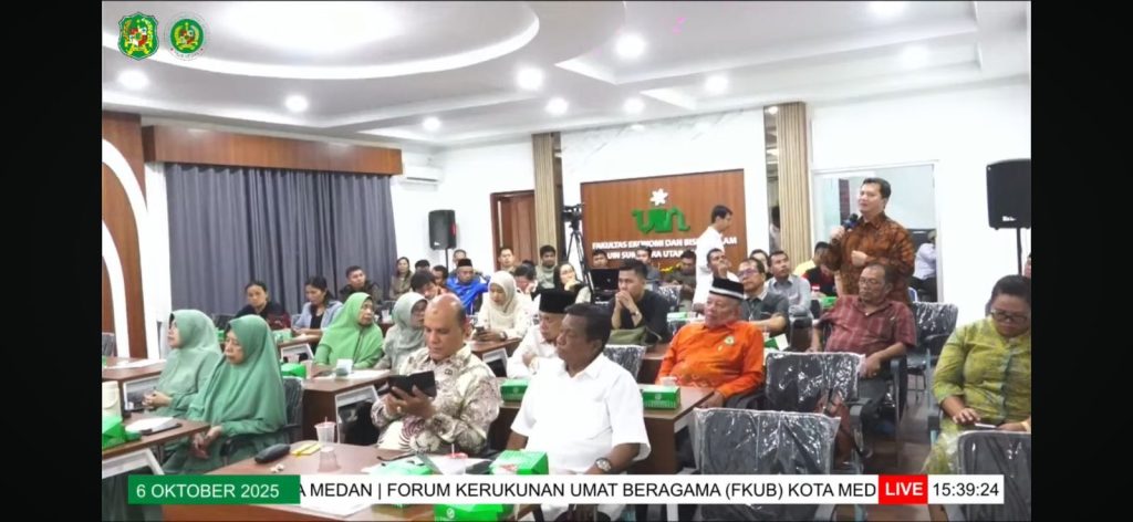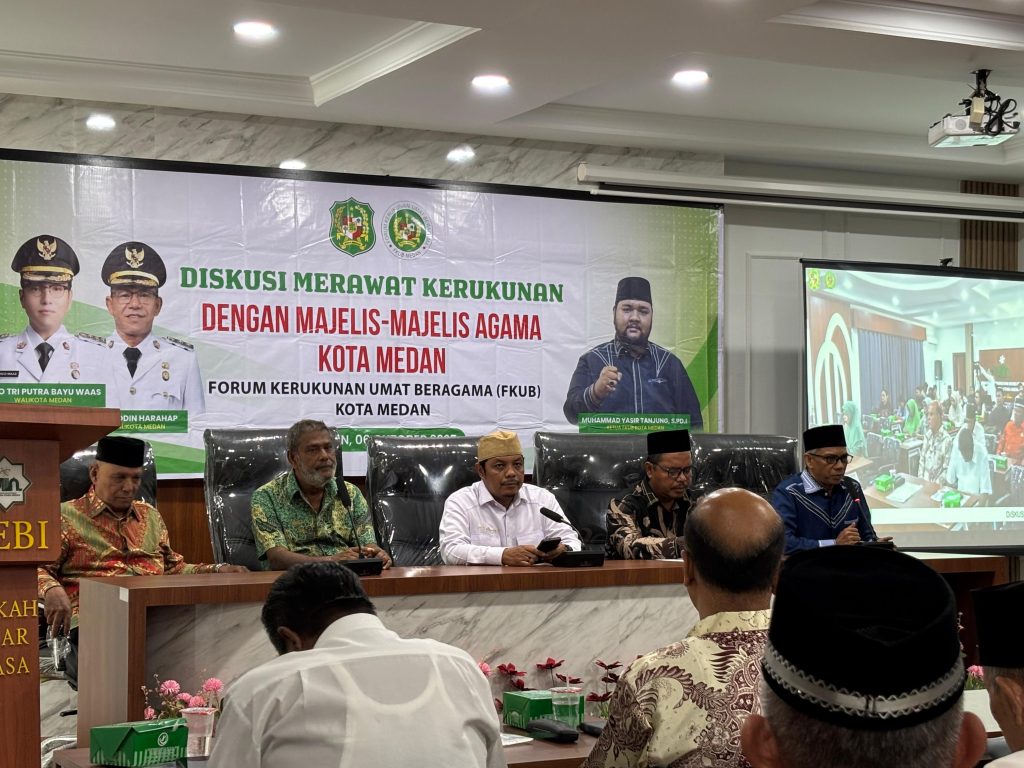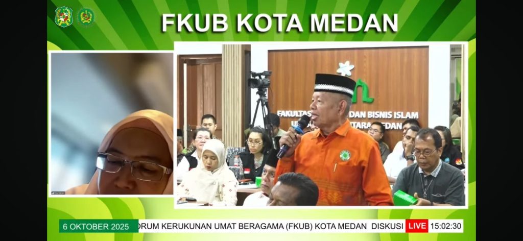 Medan,fkubkotamedan.or.id– Forum Kerukunan Umat Beragama (FKUB) Kota Medan melaksanakan “Diskusi Merawat Kerukunan Bersama Majelis-Majelis Agama” pada hari Senin, 06 Oktober 2025 di Aula FEBI UINSU Sutomo Jl. IAIN No. 1, Gaharu, Kecamatan Medan Timur, Kota Medan, Sumatera Utara 20235.